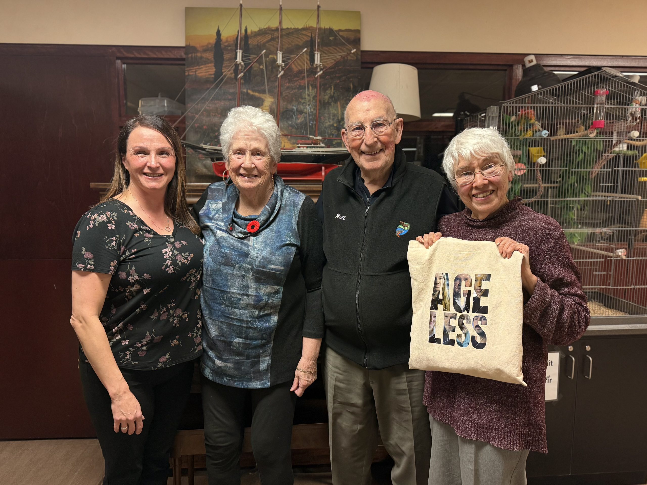 Claire Quenville, wellness activities program co-ordinator with Jeffery Hale Community Partners, stands with McGreevy Manor residents Maureen Martin, William (Bill) Cox and Mary Ellen (MEB) Reisner at the screening of the Ageless documentary. (Photo by Oksana Mukhina)