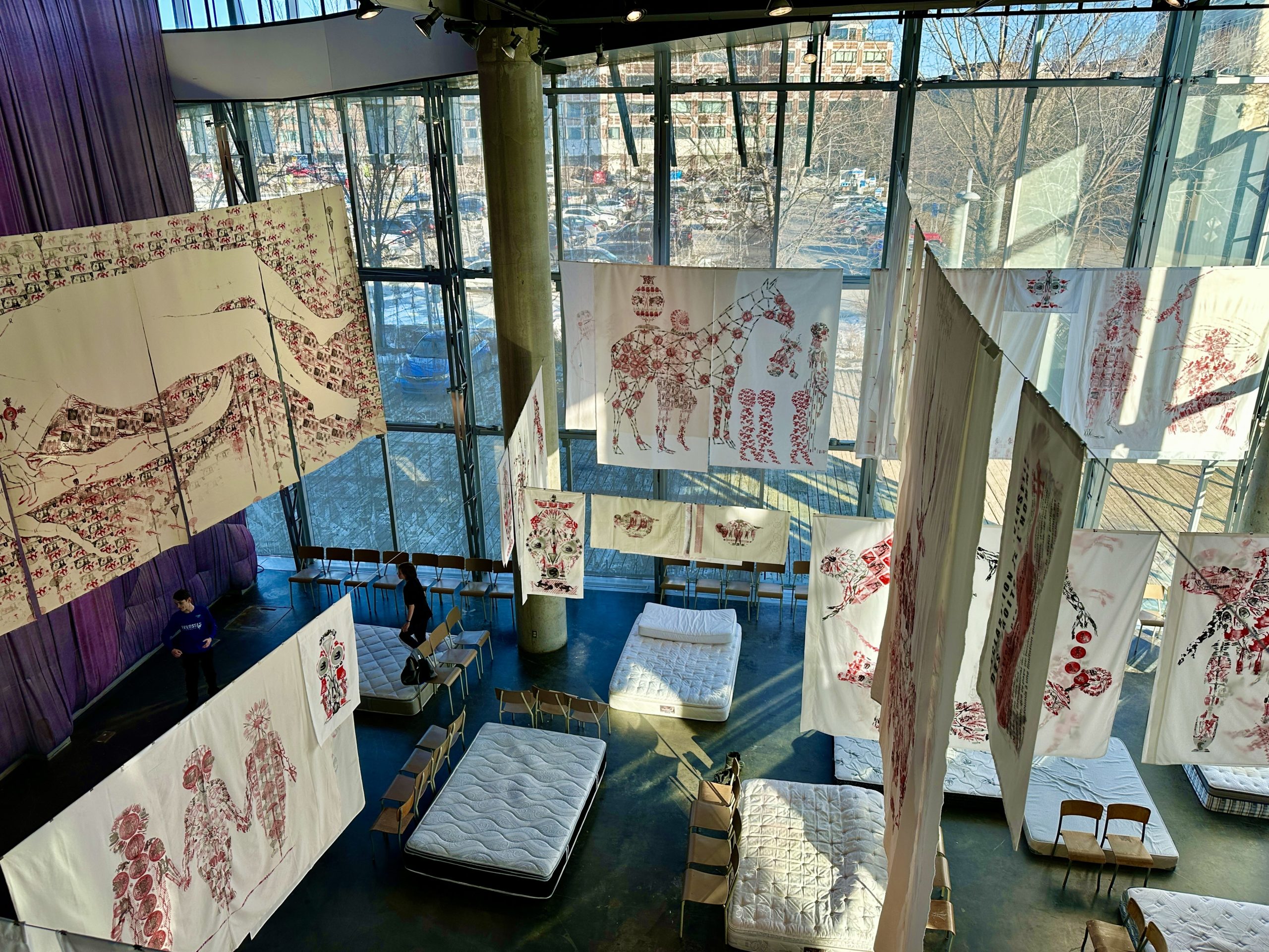The theme for the biennial Manif d’art 11 in 2024 was The Forces of Sleep. A room full of mattresses allowed for bed-hopping at Espace Quatre Cents. The 12th edition’s theme, Splitting Ice, explores winter and climate change. (Photo by Danielle Burns)