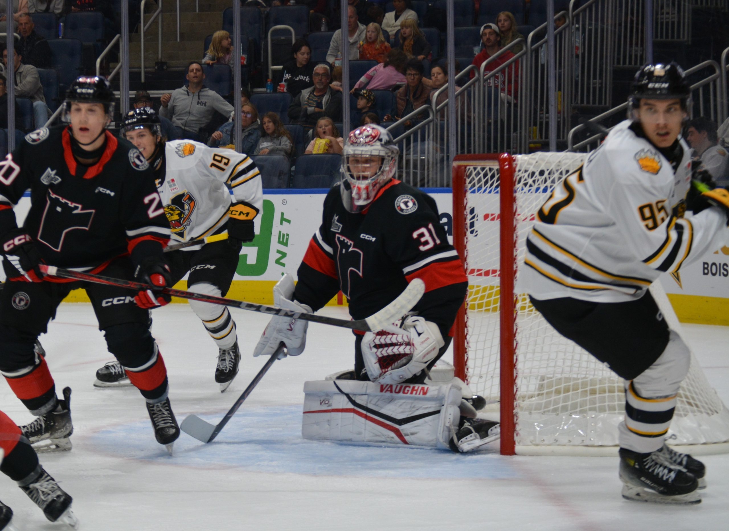 Remparts goaltender Louis-Antoine Denault, seen here in action in the 2024-25 season against the Victoriaville Tigres, was traded to the Newfoundland Regiment over the holidays. (Photo by Luc Lang)