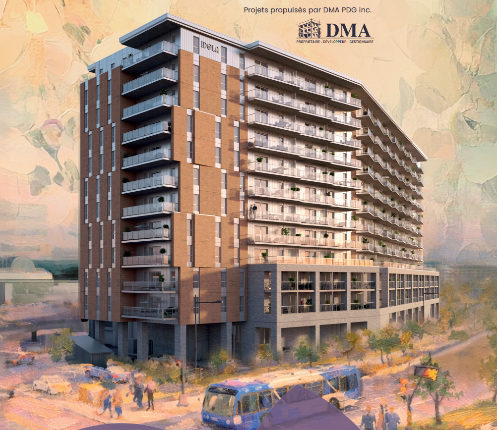 This architect’s image shows the Idola residential project on Boul. Hochelaga on the site of Laurier Québec. (Image from DMA)