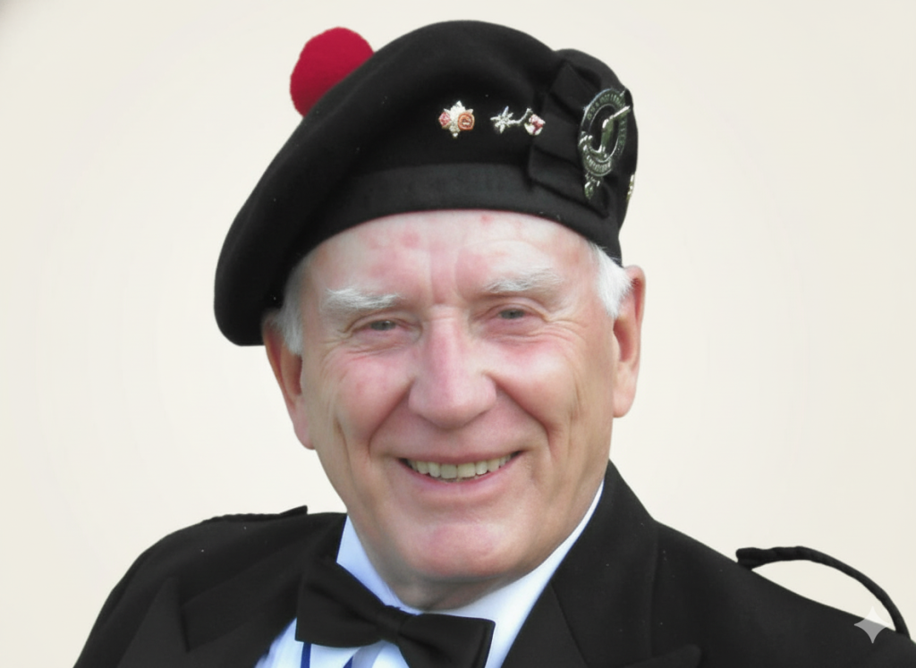 Proud of his Scottish heritage, Ted was an active member of the Clan Gunn Society, serving as Commissioner for Eastern Canada and participating in cultural and heritage events across Canada and abroad, including numerous Scottish Highland Games across eastern North America. In 2001, he published an article titled “A Call to Protect Scottish Heritage” in the Quebec Chronicle‑Telegraph (June 27, 2001). From that point forward, his involvement deepened, leading to extensive work organizing and participating in events, particularly in his role as Captain‑Lieutenant of the 78th Fraser Highlanders.