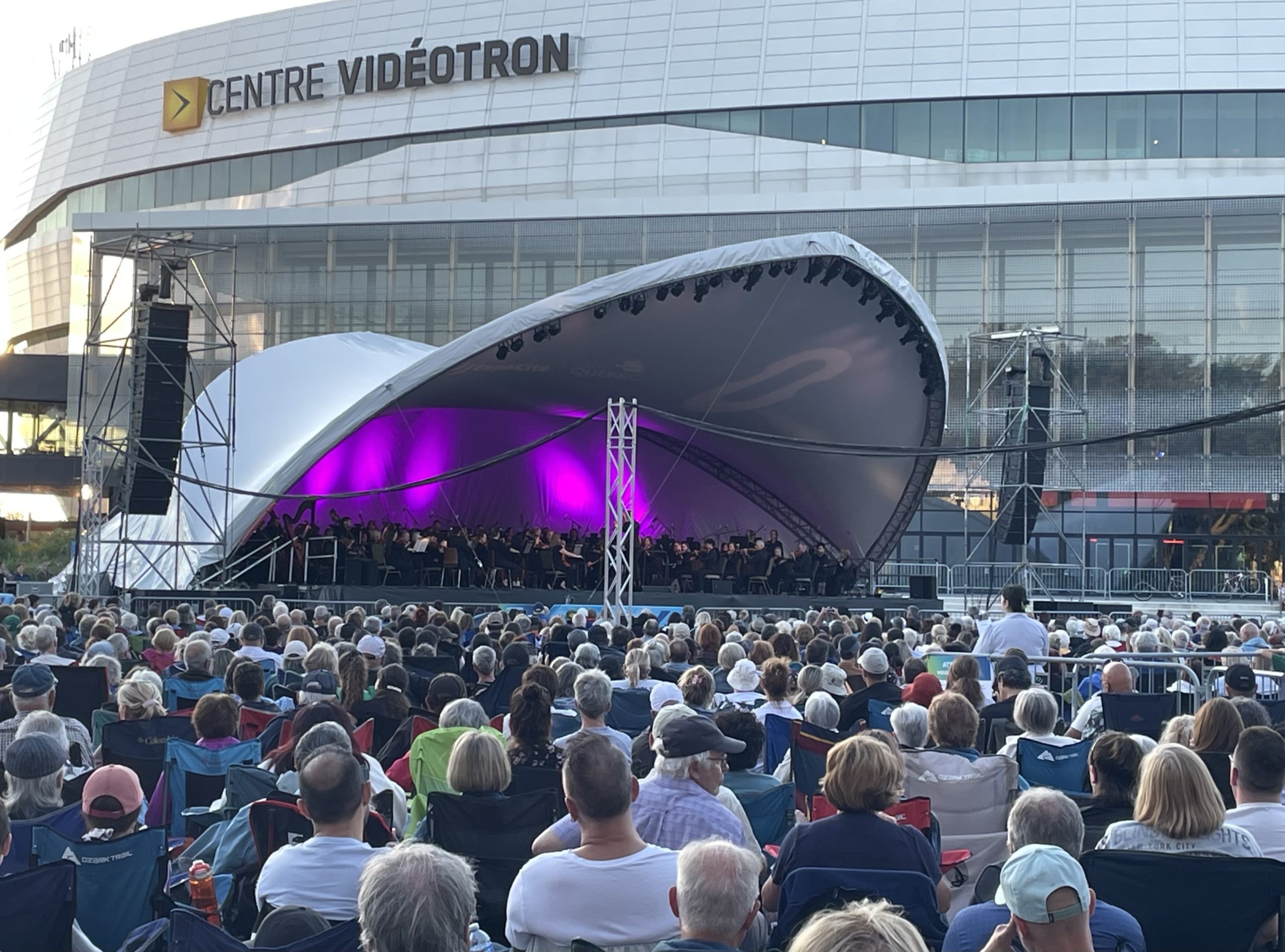 The OSQ performed before an audience of several thousand people in front of the Videotron Centre at Place Jean-Béliveau on Aug. 5. The free outdoor concert was the orchestra’s first since 2018. (Photo by Shirley Nadeau) REVIEW: The OSQ entertains thousands at Place Jean-Béliveau