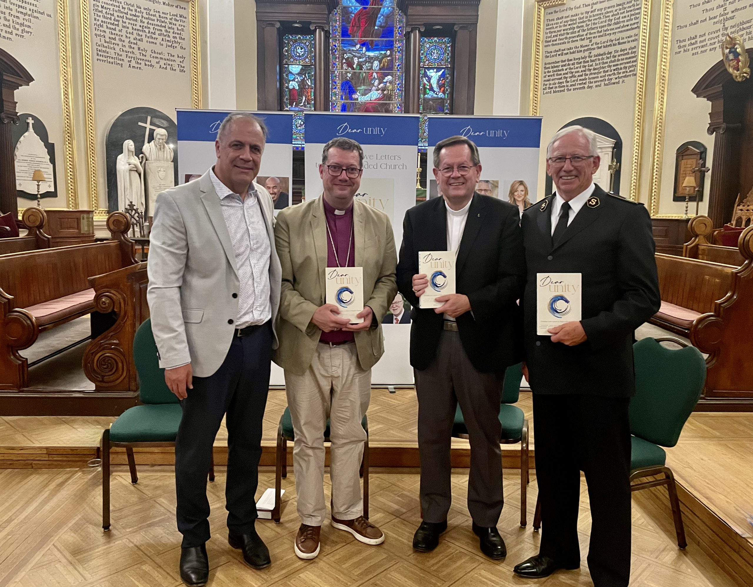 Philip Ryall, general editor of Dear Unity: Overdue Love Letters to Heal a Divided Church, hosted the Canadian launch of the book along with three contributing authors – Bishop Bruce Myers (Anglican), Cardinal Gérald Lacroix (Roman Catholic) and General Brian Peddle (Salvation Army) – at the Cathedral of the Holy Trinity. (Photo by Shirley Nadeau)