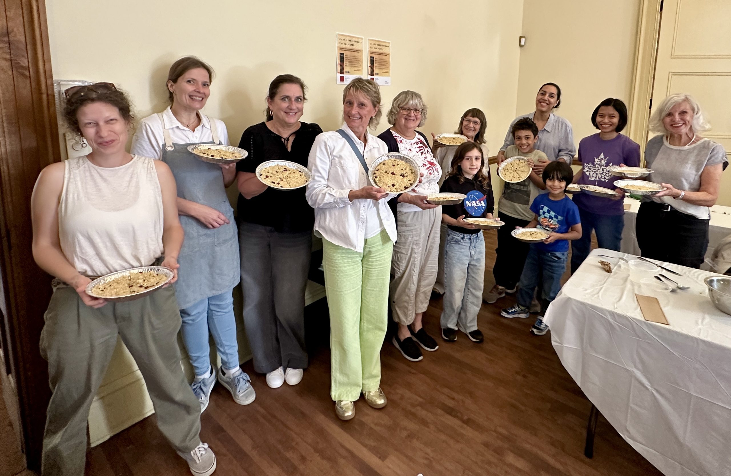 Marie-Hélène Lebel, cultural programming co-ordinator Noora Heiskanen, Terri Connolly, Rachel Vogel, Sylvie Joliceur, Dianna Burns with granddaughter Cassie Burns-Dubé, Waria Elambri with sons Adam and Sammy, Michelia Alba and Cindy Kidd participated in the 2025 Members’ Day scone making workshop. (Photo by Danielle Burns)