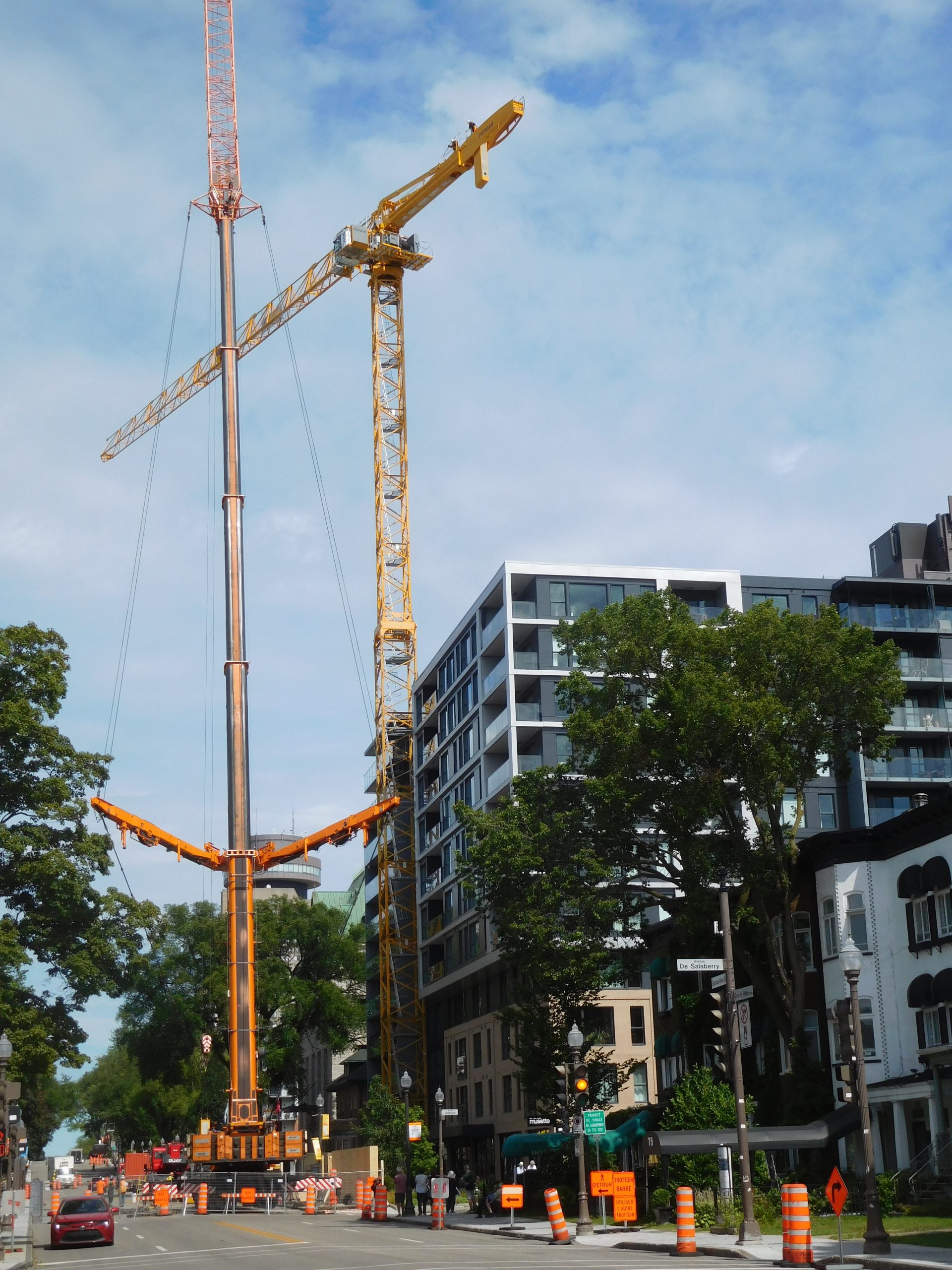 Work is already underway to add 10 storeys to the apartment building at 153-155 Grande Allée Est. Last week, a crew was erecting a towering crane in front of the building that will be used during the construction period. The owners of the building, Bilodeau Immobilier, had built the current 11-storey building, which opened in 2020, with an eventual addition in mind. The company also owns the Montmorency building behind the Grande Allée tower on Ave. Wilfrid-Laurier. Company general manager Éric Bilodeau previously told the QCT the impact of construction on building residents will be limited by a series of measures (see article in June 11, 2025 edition). (PB-LJI) (Photo by Jonathan Letellier-Black)