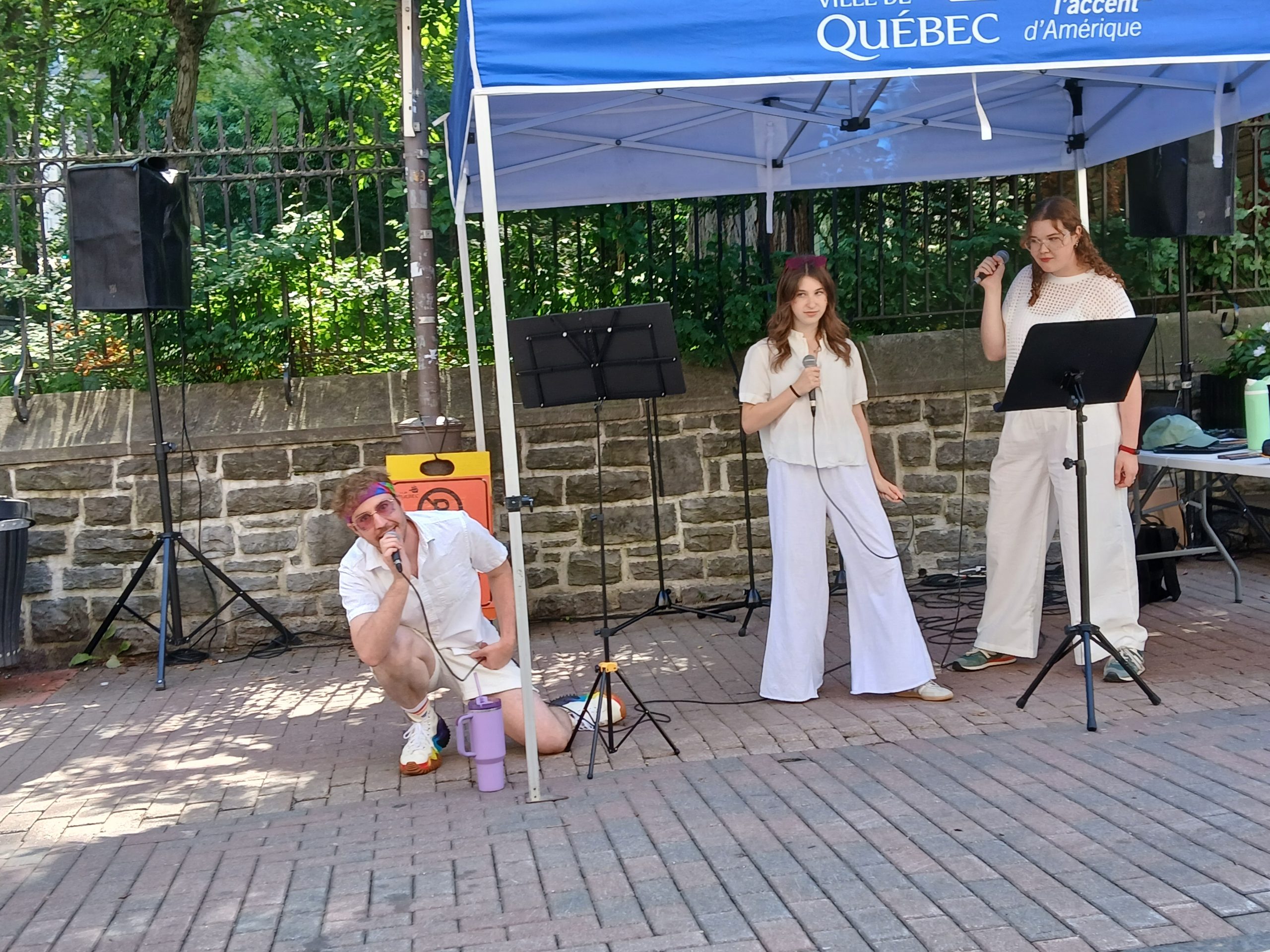 The day’s celebrations began with an open Zumba class on Place D’Youville, a queer art market and Broadway-themed street performances on Rue Saint-Jean in the historic heart of the city’s queer community, and gender-affirming activities at Place D’Youville and inside the Palais Montcalm, where people could experiment with clothes, makeup, new haircuts and gender presentation. A Sunday evening drag show featuring Barbada and Gisèle Lullaby topped off the festivities.