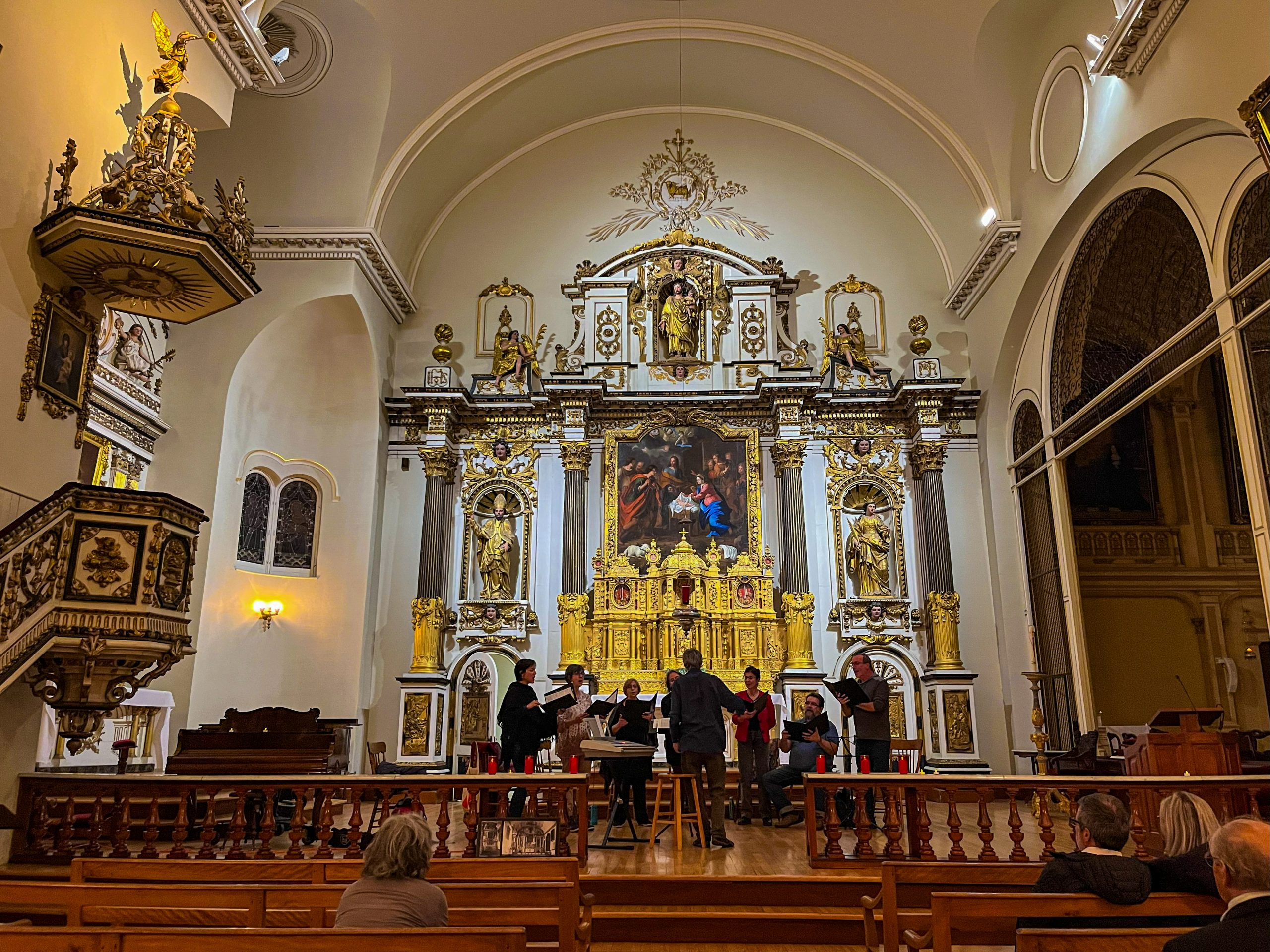 At the Chapelle des Ursulines, the choral group Cantus Antiquus practised in front of visitors during the Nuit des Clochers. (Photo by Cassandra Kerwin)